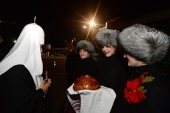 В аэропорту Храброво Святейшего Патриарха Московского и всея Руси Кирилла встречали губернатор Калининградской области Н.Н. Цуканов, епископ Балтийский Серафим, мэр Калининграда А.Г. Ярошук, духовенство Калининградской епархии.