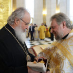 Святейший Патриарх Кирилл также поздравил с 50-летием главу города А.Г. Ярошука и в благословение на труды передал ему икону Христа Спасителя.