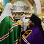 После сугубой ектении Предстоятель Русской Православной Церкви вознес молитву о мире в Украине.
