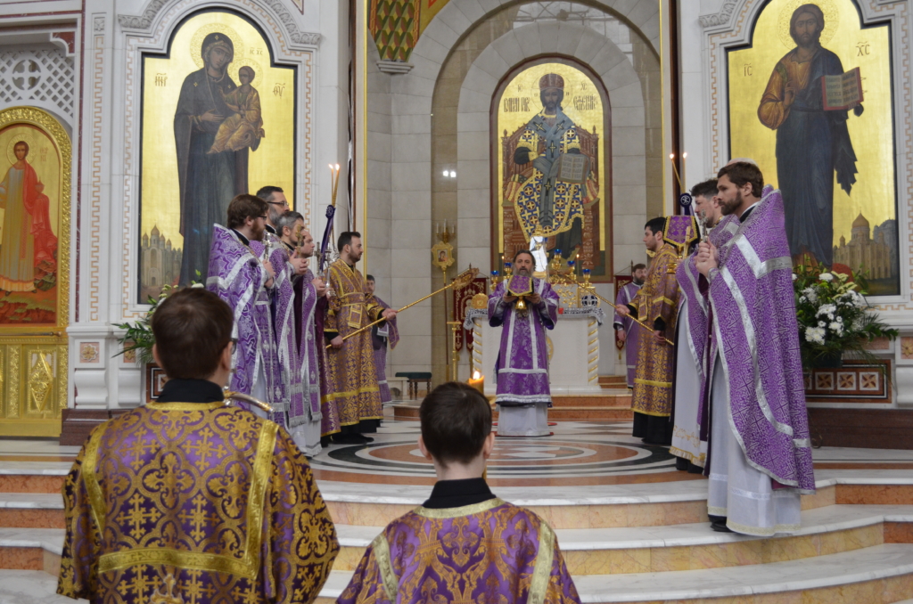 Владыке на Божественной литургии сослужили: ключарь собора — протоиерей Михаил Селезнев, клирики собора — иерей Александр Пермяков, иерей Вячеслав Климушев, иерей Александр Топчий, иерей Ростислав Ерощенко, иерей Михаил Собачинский.