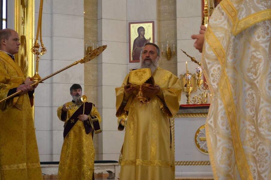 Его Высокопреосвященству сослужили: ключарь собора протоиерей Михаил Селезнев и епархиальное духовенство.