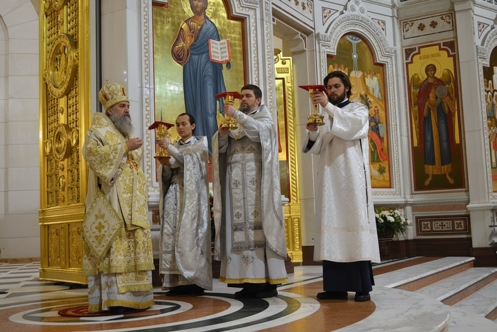 Его Высокопреосвященству сослужили клирики собора.