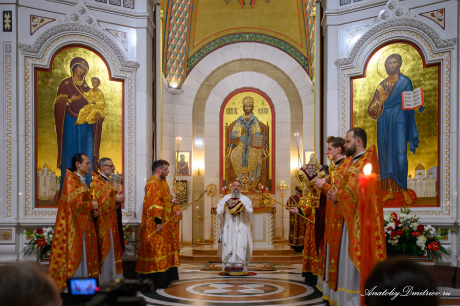 За богослужением было зачитано Пасхальное послание Патриарха Московского и всея Руси Кирилла.