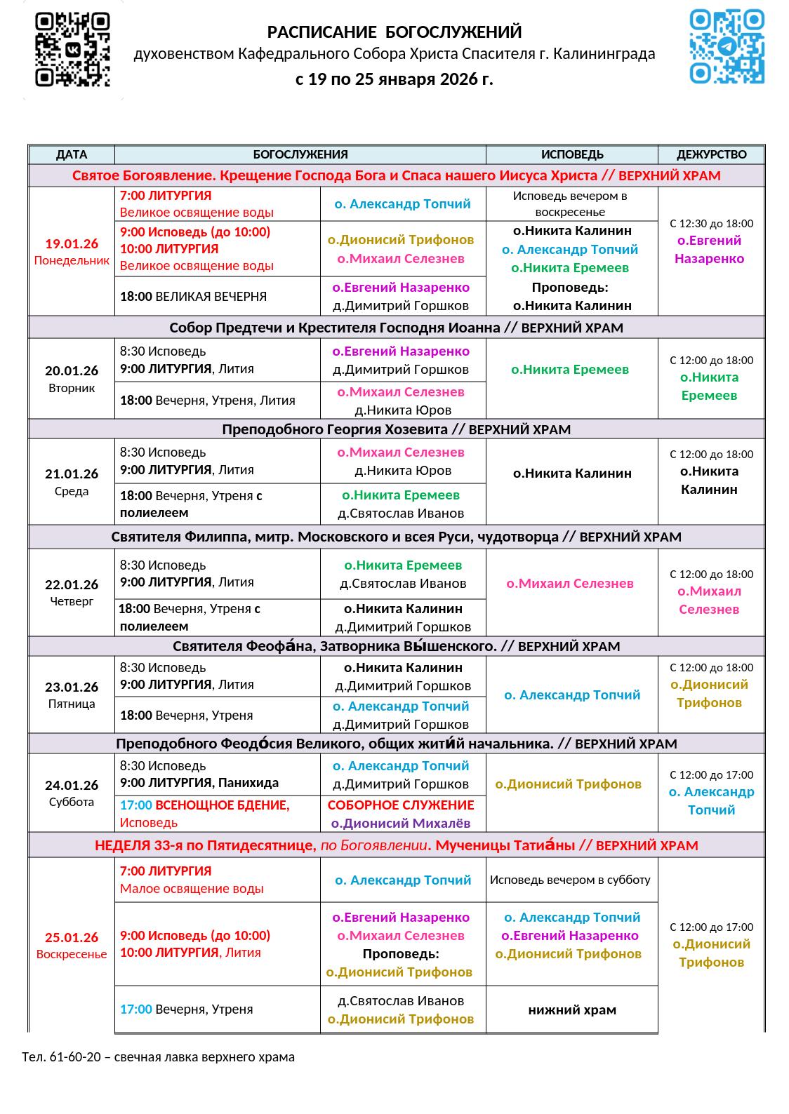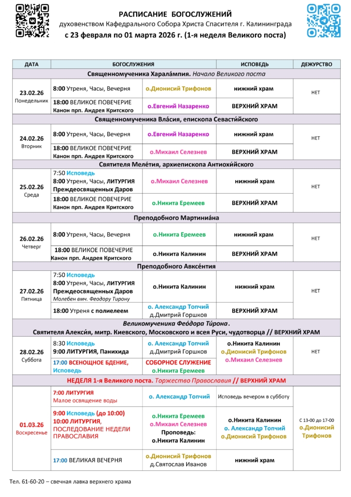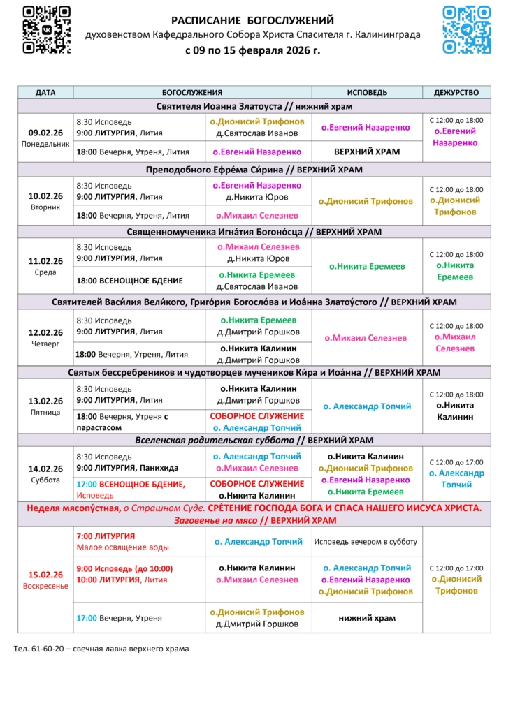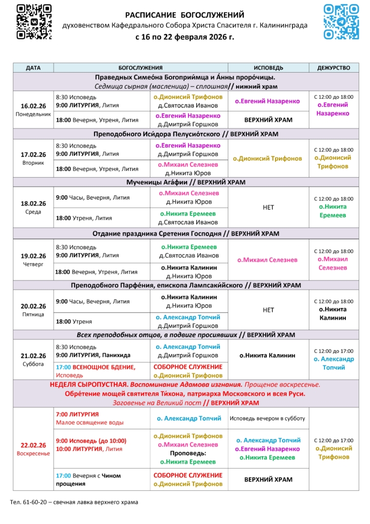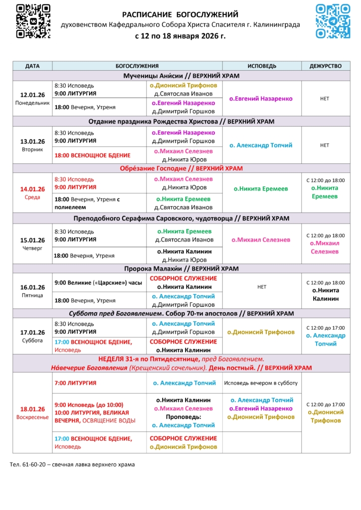 Смотрите расписание богослужений также